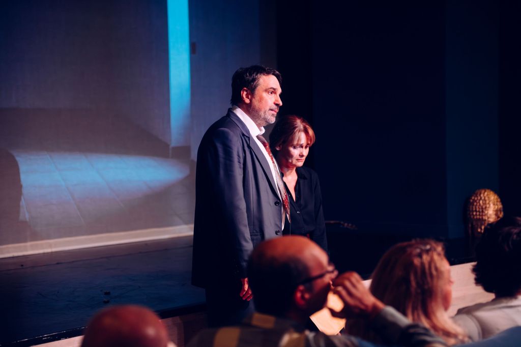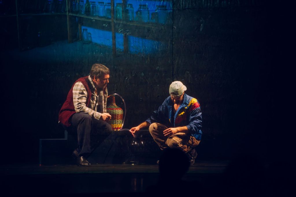 Gabi Costin păstrează constant acea grijă paternă în fiecare ipostază voit caricaturală pe care o atribuie personajelor pe care le interpretează. Cel mai performant moment din spectacol e, poate, dialogul imaginar cu soția absentă, atunci când tristețea personală ce îi sugrumă cu lacrimi vocea trebuie acoperită blând cu jocul de personaje de dragul fetiței lui. Cu micro-expresii, tonuri și gesturi- tic pentru fiecare personaj, într-o alternanță ludică savuroasă, universul bogat pe care îl aduce în scenă e motivul pentru care funcționează până la capăt această propunere de a miza pe emoția unui text aparent scris tocmai pentru a eluda patetismul.