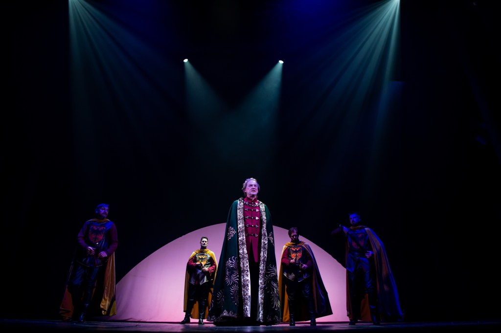 Ritmul acestui text cu multe planuri, nume de personaje încâlcite şi uşor derutante şi o glisare perpetuă între un trecut de demult, un prezent cinic şi un alt trecut mai puţin îndepărtat e bine dozat şi ferit de lungimi periculoase. Începutul expozitiv e bine pus în mişcare de o hârjoană energică în care se instalează subtil emoţia ratării unor actori care îşi deplâng irosirea talentului pentru un job lipsit de glorie – acest insert lipsit de orice ostentaţie are consistenţă şi o sinceritate scenică deloc de neglijat. De cealaltă parte există şi exagerări şi acţiuni care par forţate, doar marcând ideea animării unor scene: momentul în care accidentul de călărie de acum douăzeci de ani e povestit trântind tronul pentru a crea puţină dramă nu e doar lipsit de necesitate, dar şi crispant. Şi nici tronul însuşi nu e realizat prea izbutit încât să fie pus în prim-plan atât de insistent.