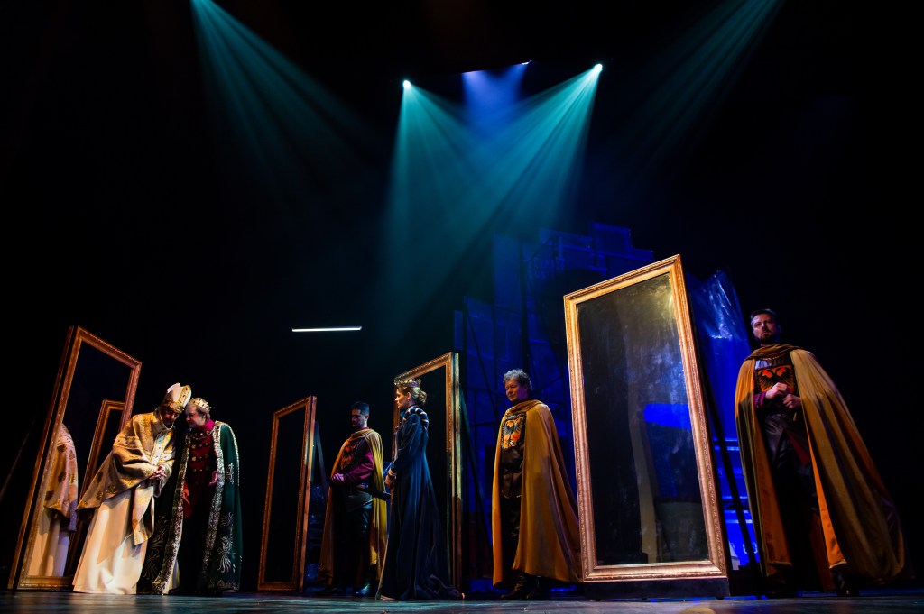 Spectacolul regizat de Vlad Cristache la Teatrul Odeon e construit pe o structură solidă, foarte sigură, ce nu îşi asumă prea multe riscuri. Drumul cel mai drept e şi cel mai scurt, iar conştiinciozitatea parcurgerii pas cu pas a instrucţiunilor de folosinţă a textului e răsplătită. Cu respect pentru un soi de naturalism modern, fără prea multe intervenţii spectaculoase, cu o poziţionare destul de statică a personajelor în semicerc atât cât să se vadă frumos toată lumea pe scenă, cu câteva idei bune şi două imagini de impact, tabloul privit în ansamblu nici nu impresionează, nici nu deranjează. Greşeli flagrante nu sunt, dar nici culmi. Ambianţa sonoră pe care Cezar Antal o creează live pigmentând replici şi momente cheie contribuie consistent la crearea atmosferei din care nu lipseşte nici puţin fum şi un lighting design funcţional. Imaginile teatrale sunt amânate pentru finalul spectacolului, atunci când întreaga construcţie scenică e controlată, parcă, de voinţa unui Henric cu adevărat suveran peste o trupă de actori ce se transformă din angajaţi în supuşi. Până atunci promisiunea unor oglinzi ce rămân doar citatul semnalat al unui simbol şi prezenţa masivă a unui ventilator care doar arată spectaculos rămân elemente care seduc şi abandonează imaginaţia spectatorilor.