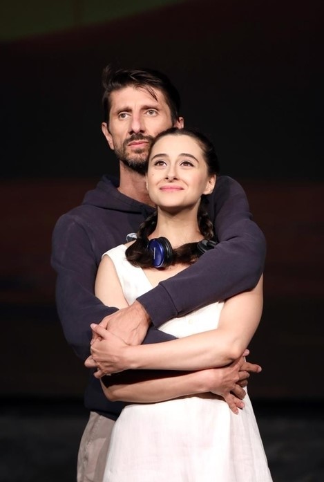 Montarea lui Răzvan Oprea are calitatea de a nu epata prin invenţii decât acolo unde permite structura dramatică. Câteva inserturi voit cheesy-dramatice care să potenţeze absurdul ori umorul involuntar al situaţiilor stânjenitoare sau patetismul îngroşat al actorilor din acest meta-scenariu de teatru în teatru. Trigorin şi Nina se îndrăgosteasc în ploaia care curge doar pe ei ca dintr-o stropitoare, fotografiile din roluri iconice proiectate pe fundal în timp ce personajele-actori îşi rostesc monologul, spărturile cu sens în cel de-al patrulea perete sunt câteva exemple bine punctate, care jalonează just parcursul spectacolului. Cea mai inventivă scenă rămâne cea a performance-ului pe care Con şi Nina îl prezintă cu încredere în veşnicele forme noi – un amalgam de mesaje politice şi zvâcniri pseudo-artistice care seamănă în raport de 1:1 cu mai orice spectacol militant-pretenţios de pe scenele contemporane. Cu un bust ce seamănă cu un Radu Beligan tânăr, tapetat cu etichete de multi-naţionale bogate, zdrobit cu bâta la propriu în mijlocul scenei, cu proiecţii cu dansuri lălâi, cu microfoane în care se turuie vorbe isteţe, dar cam fără sens, şi cu multă sexualitate pentru care ruşinos e să îţi fie ruşine. „Aici şi acum”-ul postulat de Stanislavski devine un pretext pentru forme pline de ego şi încredere oarbă în sinele lipsit de fond. Un exerciţiu critic-artistic dus până la capăt, deloc ostentativ şi fidel scopului declarat al teatrului de a pune oglinda în faţă, de această dată sie însuşi.