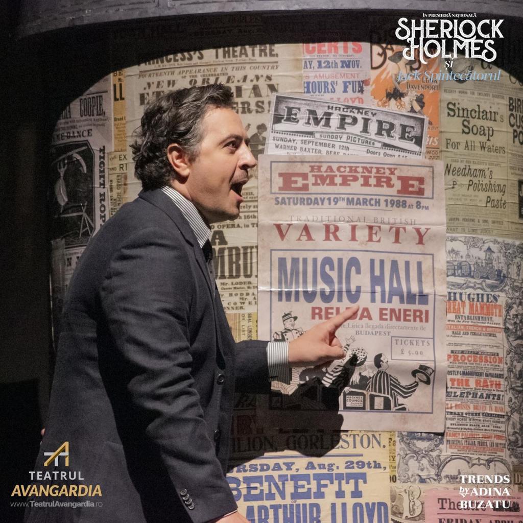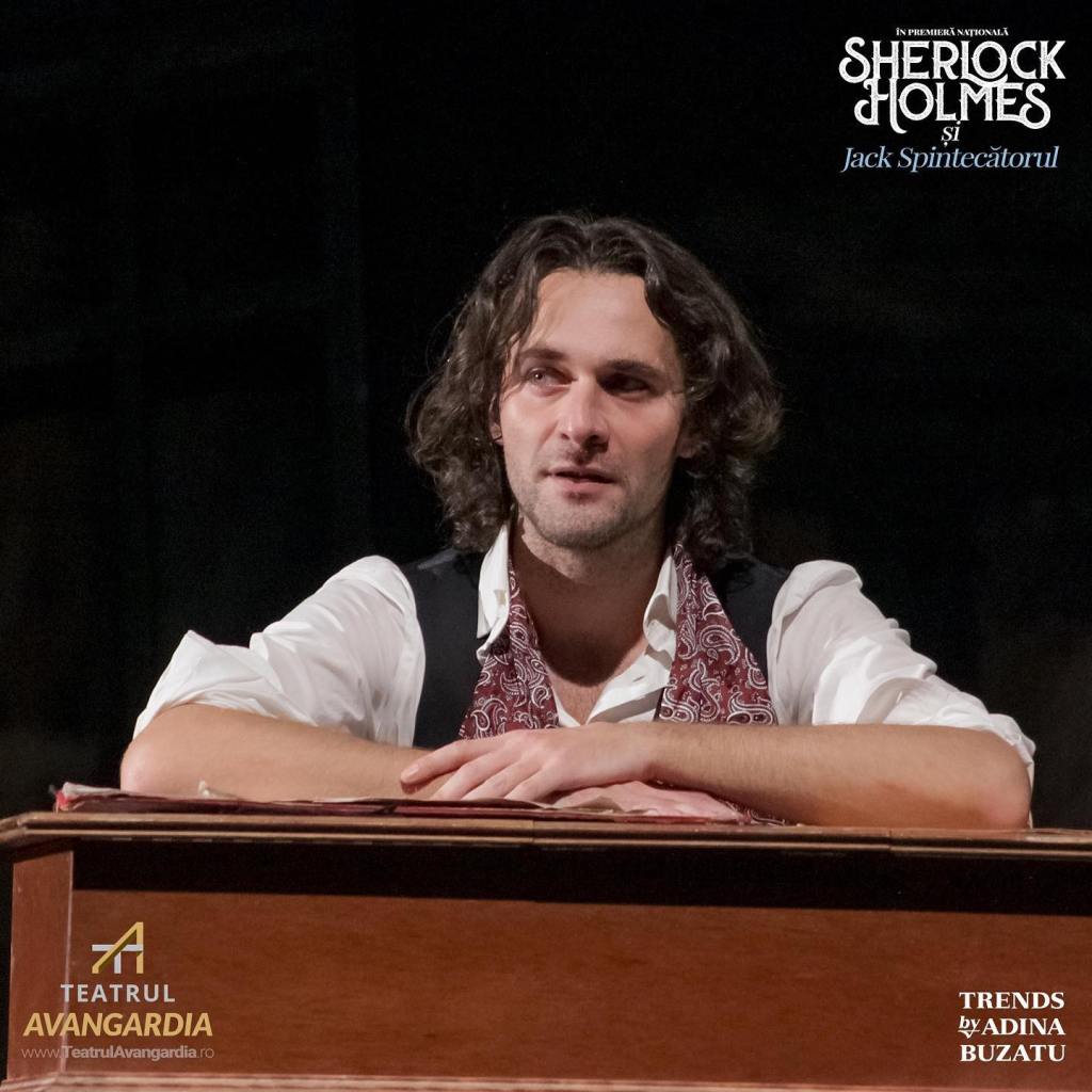 Unul dintre interesele garantate rămâne, însă, neschimbat peste secole – misterul. Dacă semnele de întrebare asupra unui fapt sunt suficient de multe şi de promiţătiare de stimuli intelectuali nu foarte sofisticaţi, dar plini de adrenalină, atunci neliniştea civilă se transformă în curiozitate pentru povestea ce ne prinde în cârligul ascuţit al incertitudinilor. Spectacolul „Sherlock Holmes şi Jack Spintecătorul” de Cata Munar şi Ricard Reguant, producţie a Teatrului Avangardia, reuşeşte prin mijloace scenice simple să redea atmosfera atât de îndrăgită de fanii serialelor şi filmelor ce îl au ca protagonist pe celebrul personaj al lui Sir Arthur Conan Doyle. Fără o scenografie elaborată, doar cu un fundal în perspectivă şi câteva elemente de mobilier ce intră şi ies în scena goală pentru a sugera spaţiile de joc, într-un eclaraj obscur şi culori tautologice, dar semnificative pentru a sublinia situaţiile în momente cheie, cu puţin fum şi o muzică excesiv de ameninţătoare, ostentativă, care induce artificial starea de spaimă şi teroare, ambianţa şi spaţiul de joc nu promit foarte multe.