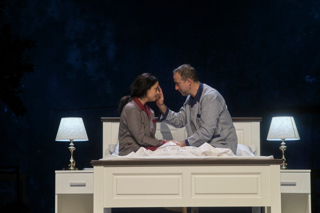Primul cuplu format din Gabe și Karen, interpretați de Șerban Pavlu și Ana Ioana Macaria, este solid construit atât în ceea ce priveşte cuplul din acţiunea piesei, cât și în relaţia dintre actori. Amândoi joacă natural și sincer, fără artificii. Șerban Pavlu este un actor versatil, lucru care îl face mereu surprinzător. De data aceasta este de remarcat maturitatea cu care-și asumă rolul, dar nu într-un mod rigid, ci foarte așezat. Poate că „echilibrat” este adjectivul cel mai potrivit pentru a-i descrie interpretarea. Cealaltă jumătate a cuplului, Ana Ioana Macaria, are un parcurs la fel de plăcut. Fragilă, dar și puternică, interpretează rolul unei femei la sfârșit de vârstă mijlocie, pe cale de a se rătăcii, simplu, sincer, fără crize superficiale, fără clișee obosite. Doar prin gesturi aparent uzuale și multă, multă grijă și atenție. Împreună, cei doi actori, au o relație foarte plăcută. Reușesc să creeze oglinda unui cuplu așezat și trecut prin viață, în care cei doi parteneri îşi găsesc mereu echilibrul unul în brațele celuilalt.