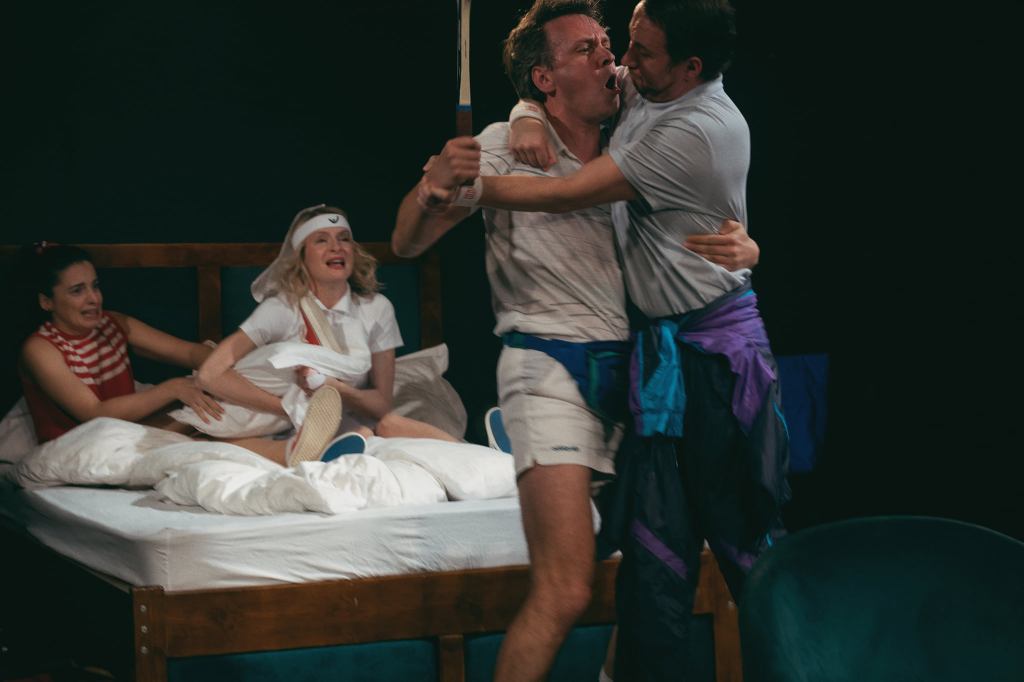 Spectacolul debutează ca o comedie de situație în care protagonistul transpiră mult. Din scriitură, prima scenă este cea mai ofertantă și mai dinamică – o mahmureală sinceră de amiază. Și prinde la public așa cum soția (Corina Moise) îl prinde pe soţ (Dan Rădulescu) cu o prostituată în pat. Notabilă este (culmea) Nicoleta Hâncu, antagonista perfectă și în somn, cu lejeritatea ei obraznică. Nici nu trebuie să facă prea multe ca să fure show-ul. Pe partea cealaltă a spectrului, Corina Moise rămâne strălucitoare în rolurile ei rigide, niciodată schematică, niciodată lipsită de acea bucățică recognoscibilă de feminitate umană.