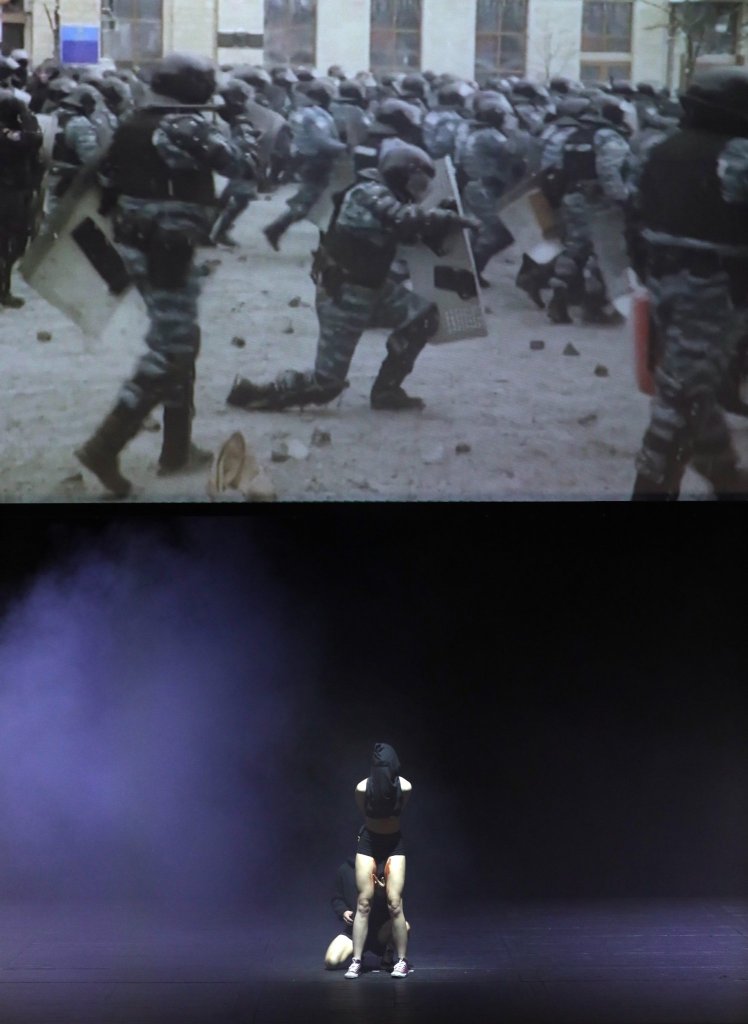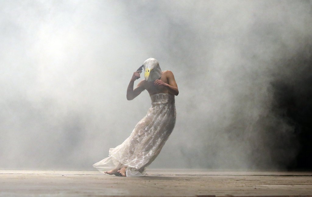 Comentariul social în care se amestecă războiul cu feminismul ori credo-urile artistice ale Angélica Liddell şi Rainer Werner Fassbinder cu woke e un fragmentarium de multe intenţii duse până la jumătate; un compendiu de citate puse ca pe un platou de bufet suedez, fără a deveni preparate de haute cuisine. Imaginile sunt percutante, unele scene au impact vizual şi generează emoţie – Nina îşi spune monologul în ucraineană, legată de mâini şi cu cagulă pe cap, Polina spală scena cu părul amintind chiar de aşa-numitele exerciţii de actorie prea bine-cunoscute unor generaţii de absolvenţi ai şcolilor de teatru, Trigorin seduce şi se lasă sedus dezbrăcându-se metodic în faţa unei Arkadine îngenuncheate, „puşca din actul II” devine un arsenal din poligonul de trageri în actul IV, pescăruşul ucis e o mască de cauciuc pe capul unui Treplev-mireasă. Există multă sensibilitate, există mult meşteşug, există poezie, chiar, toate, însă, puse în slujba unei intenţii îndârjite de a da lecţii despre cât de prost se face teatru. Convenţiile prin care se perindă spectacolul, cu citate culturale care fac trimiteri la „Livada de vişini” a lui Lucian Pintilie ori manierismele lui Radu Afrim, cu imagini grefate din Oskaras Korsunovas sau Thomas Ostermeier, ori tehnici glorificate à la Katie Mitchell sunt intenţia declarată de a ne pune oglinda în faţă tuturor celor ai teatrului. Demonstrând cât de prăfos poate fi – începutul ultimului act – sau cât de ieşit din matcă – finalul, cu un preaplin de clişee folosite doar pentru a ne expune ipocriziile, Eugen Jebeleanu foloseşte „Pescăruşul” ca pretext pentru a pedepsi, a da lecţii şi a ne pune în faţă o oglindă spartă în care se reflectă şi pe sine. „R.I.P. TNB” scris cu ruj nu e nici o glumă, nici un gest impertinent, nici un mare curaj – e doar speranţa de a zgândări superficial sensibilităţi încarnate într-un trecut perpetuu; o miză atât de mică pentru un sacrificiu al integrităţii atât de asumat. Pentru că nu poţi în acelaşi timp să montezi pe scena mare, cu toată gloria şi vizibilitatea pe care le atrage cu sine, şi să conteşti tocmai asta, având pretenția de a-ţi păstra nobleţea puterii de a îndura.