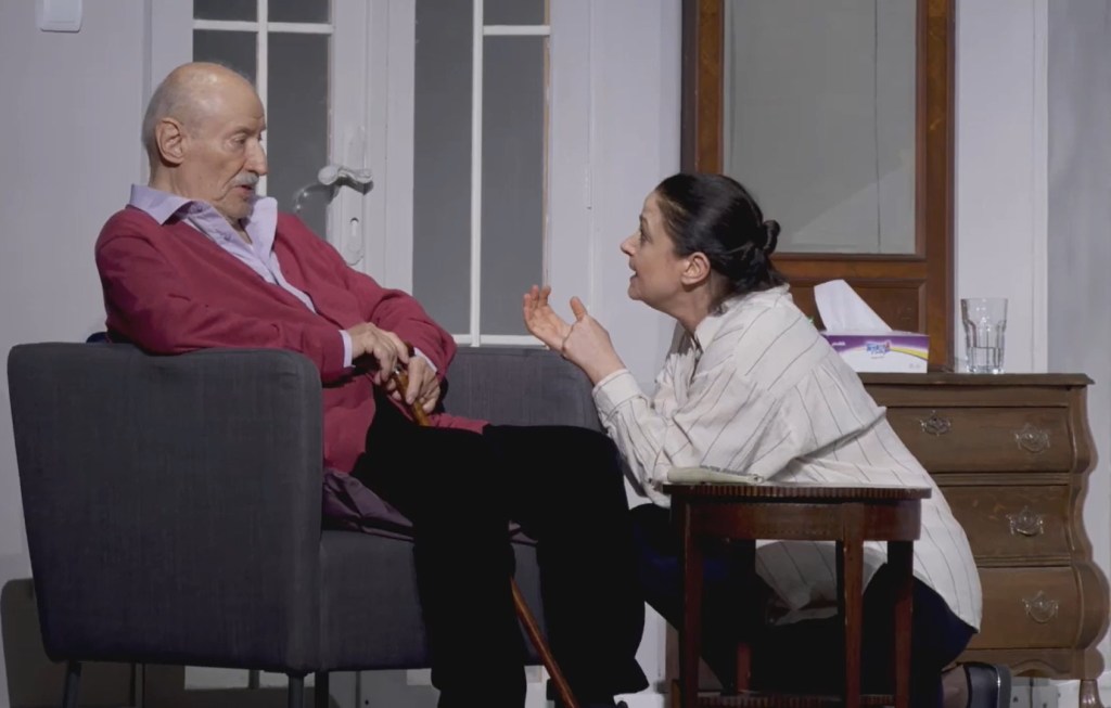 Pentru ca jocul banalului devenit excepţional să funcţioneze este nevoie de o interpretare la fel de elegantă. Victor Rebengiuc nu îl prezintă pe André; nu interpretează filtrat o imagine a ceea ce ar trebui să vadă spectatorii că i se întâmplă unui om ce suferă de Alzheimer. Personajul construit de el trăieşte foarte concret tot ce i se întâmplă. E foarte sincer în mirarea lui care capătă proporţii giganteşti şi se transformă în frica cea mai înspăimântătoare. Cu multă măsură, cu un gând interior ghidat de o logică imbatabilă, felul în care răspunde atât partenerilor, cât şi situaţiilor cu care se confruntă acest bărbat aflat în vortextul minţii care nu îl mai ascultă, rolul interpretat aşa de Victor Rebengiuc are o calitate esenţială: umanitate. Nu dar empatizezi cu el, nu doar înţelegi, nu doar asişti la o dramă. Îl simţi acut aproape, găseşti în el o bucăţică din propia viaţă, din propriul tată, din propria uitare, din propria frică. Nu e nimic demonstrativ, nu e nimic teoretic în acest personaj alcătuit minuţios, care ia gândurile de-a valma foarte în serios şi le acordă toată importanţa. Are mult umor şi auto-ironie, e hachiţos ca orice bătrân ce refuză să îşi cedeze vârstei puterile şi refuză cu obstinaţia unui copil pe care nu te poţi supăra grija de care ştie că are nevoie, dar pe care o demontează printr-o vivacitate jucată voit stângaci – ca orice bunic încă în putere. Aşezarea în rol, ascultarea atentă, timpii de reacţie de precizie milimetrică, bucuria ludică şi ruperile de ritm şi intenţie venite, parcă de nicăieri, ce descoperă din loc în loc colţurile fricii pe care se luptă să o alunge cu paşi de step sau gesturi galante, această interpretare rafinată a simplităţii nobile pe scenă, sinceritatea de puritate aproape terapeutică, toate mijloacele bogate, lucrate în amănunt, pot fi rezumate cu un singur verb: a fi. Victor Rebengiuc este pe scenă; cu toată seriozitatea, demnitatea şi nobleţea. Iar prezenţa sa, întru totul, spune povestea acestui tată-arhetip, acestui ins pus faţă în faţă cu frica dintotdeauna a omului: de moarte, de singurătate, de uitare.