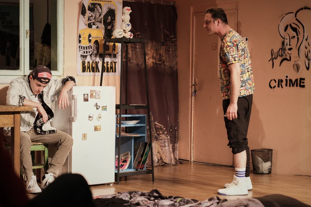 Duo-ul dintre un coleric afacerist și un fraier hipersensibil face, în primul rând, dovada unui joc actoricesc care se concentrează pe relație, pe tensiune și pe creativitatea contrapunctului dintre replici. Tocmai prin organicitate, construcția situației devine spectaculoasă, într-o serie de palme peste față, de golănii contemporane și de parfum de perioadă reagănistă. Brutal și libertin ca o călătorie cu ultimul metrou de noapte în New York, spectacolul pune punctul pe toate i-urile din nevoia post-adolescentină de a te agăța de tot ceea ce are izul familiar de copilărie. În alăturare directă cu duritatea punk și entuziasmul naiv și proaspăt dobândit pentru droguri, această melancolie explică, în linii fine, tumultul unui tânăr adult (care încă mai copilărește).