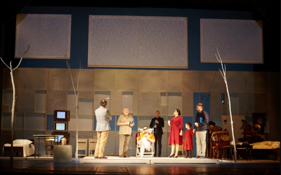 Spectacolul este cum nu se poate mai lipsit de viaţă; o coajă aproximativă şi politicoasă pentru un mesaj atât de intimidant prin renume şi genialitatea formei princeps. Într-un decor realmente nefericit şi aproape aleatoriu, pur şi simplu trist şi lipsit de personalitate, realizat de Ştefan Caragiu, cu câteva intenţii de video design, semnat de Andrei Cozlac, ce se înscriu în aceeaşi notă previzibilă şi general valabilă precum întregul aspect vizual, lumea care l/a făcut celebru pe Orwell e departe de a fi reprezentată pe scena ieşeană. Generalizarea e cuvântul cheie care defineşte întregul parcurs artistic – de la estetică, la jocul actorilor, la acţiuni scenice şi rezolvări regizorale. Impresia de respect pentru roman gravitează în jurul lipsei de creativitate şi carismă a acestei montări ce se ţine, parcă, de-o parte; nu striveşte corola de minuni pe care doar se preface că o citează. Rama în care viitorimea analizează ideile orwelliene e demnă de o scenetă de teatru de amatori. Actorii îşi aşteaptă cuminţi rândul, recită nişte idei care în mod cert nu înseamnă mai mult pentru ei decât text învăţat pe de rost şi ocupă locul în care li s-a spus să stea – o imagine dezolantă care distruge atât începutul cât şi finalul spectacolului.