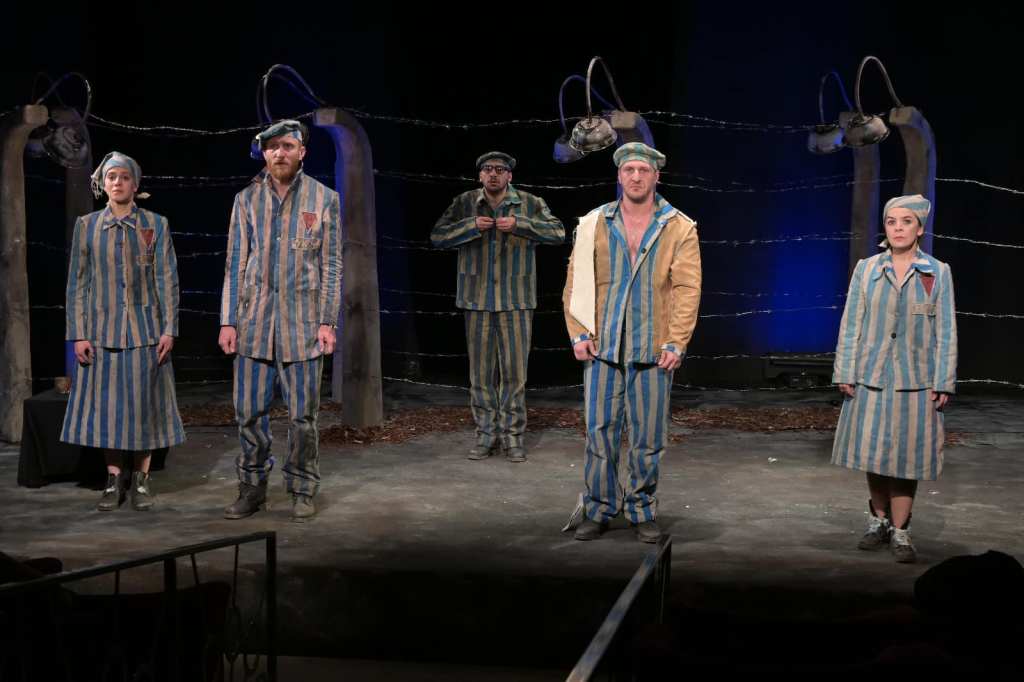 Radu Catană are un frison constant, îşi asumă rolul de bufon şi exagerează în control grimasele personajelor pe care le schimbă. Modalitatea prin care redă frica e o agitaţie vioaie prin care încearcă să amâne inevitabilul cu hărnicia celui care încă mai poate fi util. Ştefan Liţă are o vitalitate pe care o ponderează făcând trecerea către personajul cel mai fragil, mereu în căutarea unui cub de zahăr sau a unei firimituri de pâine. Sperios, docil, pierzându-şi puterile treptat, e cel pe care îl urmăreşti cel mai atent între scene pentru că fragilitatea lui este emoţionantă. Claudia Vasile are măsură în stridenţele feminine pe care disperarea le încearcă pentru a intra în voia celui cu drept de viaţă şi de moarte asupra sa. Ioan Paraschiv are cele mai bogate mijloace de expresie şi construieşte cele mai vibrante contrapuncte între ipostazele personajelor şi deţinutul pe cât de solid, pe atât de sensibil, cu credinţă, neputincios în a se salva pe sine şi pe ceilalţi. Privirea Ioanei Calotă e punctul fix al spectacolului. Cu intensitate şi concentrare, tăcerile sale, şoaptele blânde, eleganţa gesturilor, denotă toată demnitatea adunată cu ultimele puteri într-o femeie care înfruntă vertical și demn corvezile inumane. În ochii săi e ancora supravieţuirii de care toţi cei cinci se prind în acest ghem de suferinţă şi rezistenţă.