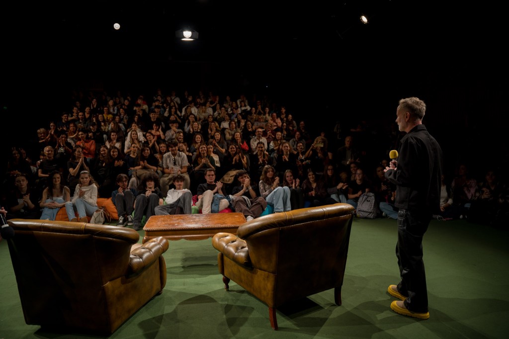 Și catharsis a fost pentru mine – ca de manual: „curățare prin milă și teamă”; la „Canin”, în regia lui Botond Nagy, unde am mai făcut pace cu ceva episoade din amintirile din copilărie deloc asemănătoare cu titlul omonim din manualele școlare. Și apoi au fost cele mai mari emoții de susținere, pe care țin minte să le fi avut vreodată ne-egoist, cu două ore înainte de ora începerii; pentru „Lungul drum al zilei către noapte” în regia lui Timofei Kuliabin, pe care pot să îl mărturisesc acum, după festival, a fi spectacolul meu de suflet din stagiunea trecută. Cel mai inspirațional, tonic și încurajator moment al festivalului a fost, pentru mine, șansa de a fi martora întâlnirii din Sala Media a TNB dintre Radu Afrim și elevii din trupele de teatru, moderată de Mihaela Michailov. Am stat „studențește”, pe mocheta verde, sprijinită de placajul de lemn și am ascultat cu o bucurie imensă un dialog între spirite pereche, tinere – respectul, normalitatea, generozitatea acelei după-amieze sunt memento-ul care îmi dă încredere că merită să credem în viitorul frumos al meșteșugului ce se reinventează continuu, creativ și curajos.