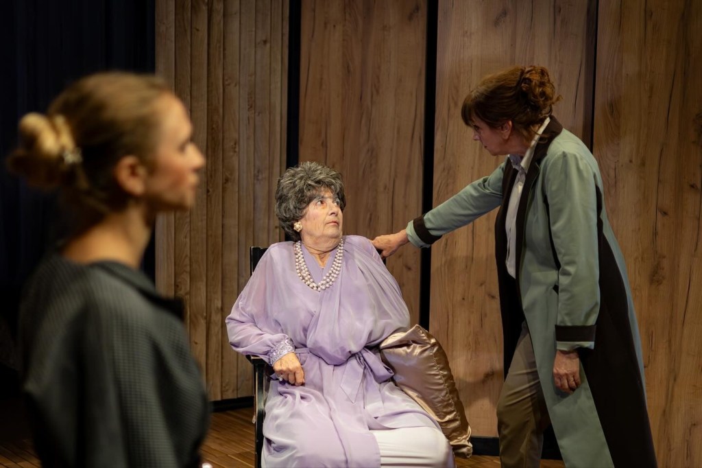 Cele trei protagoniste aduc în scenă o ascultare reconfortantă; comunică prin tăceri, prin micro-reacții, răspund cu o privire sau un gest abia schițat, se completează cu respect și par a-și purta de grijă una celeilalte. Fiecare vizitează cu ochii minții amintiri trăite sau povestite și construiesc o atmosferă demnă, în care nostalgia nu cade într-o melancolie cu tonuri lacrimogene, ci devine o confruntare nobilă cu realitatea unei vieți așa cum a fost. Alina Petrică are sensibilitatea tinereții pe care o reprezintă fără a o sublinia excesiv; mirarea sa, deznădejdea visurilor de la 26 de ani eșuate, tristețea de a sta față în față cu versiunile sale trecute prin viață – acest carusel emoțional dificil de asumat e parcurs cu multă stăpânire de sine, cu încasare autentică și gând interior constant, mereu atent. Mihaela Rădescu are forța interioră a unei inteligențe scenice care conduce fiecare cuvânt. Emoția pe care o aduce în scenă e concretă, contondentă; luciditatea cu inserții de fragilitate îi conturează întregul parcurs ca într-un desen în peniță al portretului acestei femei cu voință nesupusă, ce și-a jalonat destinul cu alegeri conștiente. Liliana Pană realizează o compoziție performantă și trece cu eleganță de la accentele comice ale realității senectuții la noblețea aceleiași senectuți în plan spiritual. Detaliile mâinii care nu se oprește din tremurat, vocea care nu obosește nicio clipă să fie guturală, abulia, sâcâiala, răsfățul, aceste mărci ale bătrâneții concrete sunt mijloacele prin care personajul său câștigă cu ușurință simpatia în prima parte a spectacoului. Apoi urmează sobrietatea detașată a unei ultime priviri înapoi spre o viață lungă și bogată, cu detașare, împăcare, așezarea de dinaintea ultimului bun-rămas. Și o face cu multă liniște, blândețe și feminitate.