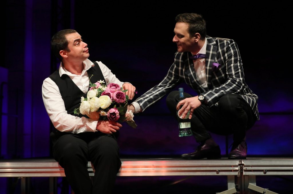Transformarea în travesti a câtorva roluri pare şi ea o alegere arbitrară, lipsită de un motiv scenic bine articulat. Maria e interpretată de un bărbat voinic şi are un haz superficial, iar Radu Zetu, oricât de ludic ar fi, nu reuşeşte să depăşească clişeele gesturilor alintate sau al comicului subţire, iscat de discrepanţa dintre fizicului său şi tonurile în voce de cap aerată. Sir Toby cu barbă lipită şi voce prefăcută e doar o formă căreia nu i s-a găsit niciun fond convingător, iar pauzele mult prelungite ale Oanei Albu duc într-o zonă încă şi mai absurdă acest personaj căruia i s-a derait funcţia. Feste e singurul care beneficiază de atuu-ul unei androginităţi a bufonilor; nu contează atât genul celui plin de spirit, cât sinceritatea umorului său trist, pe care Oana Puşcatu o conţine şi o dublează cu emoţie şi candoare, salvând aproape de una singură finalul specacolului.